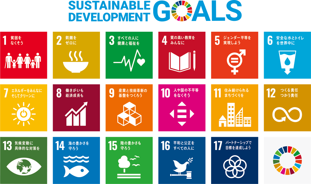 当社は国連が提唱する「持続可能な開発目標(SDGs )」に賛同し、積極的な取組みを通じて持続可能な社会の実現に貢献してまいります。